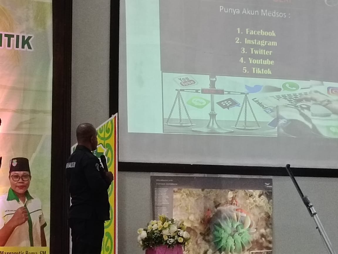 Kaimana - Humas Polres Kaimana mensosialisasikan terkait bijak bermedia sosial (bermedsos) pada Rapat Pimpinan Daerah Pemuda Katolik Provinsi Papua Barat dan Kursus kepemimpinan dasar pemuda katolik kamisariat cabang Kabupaten Kaimana, Kamis (31/8/23).