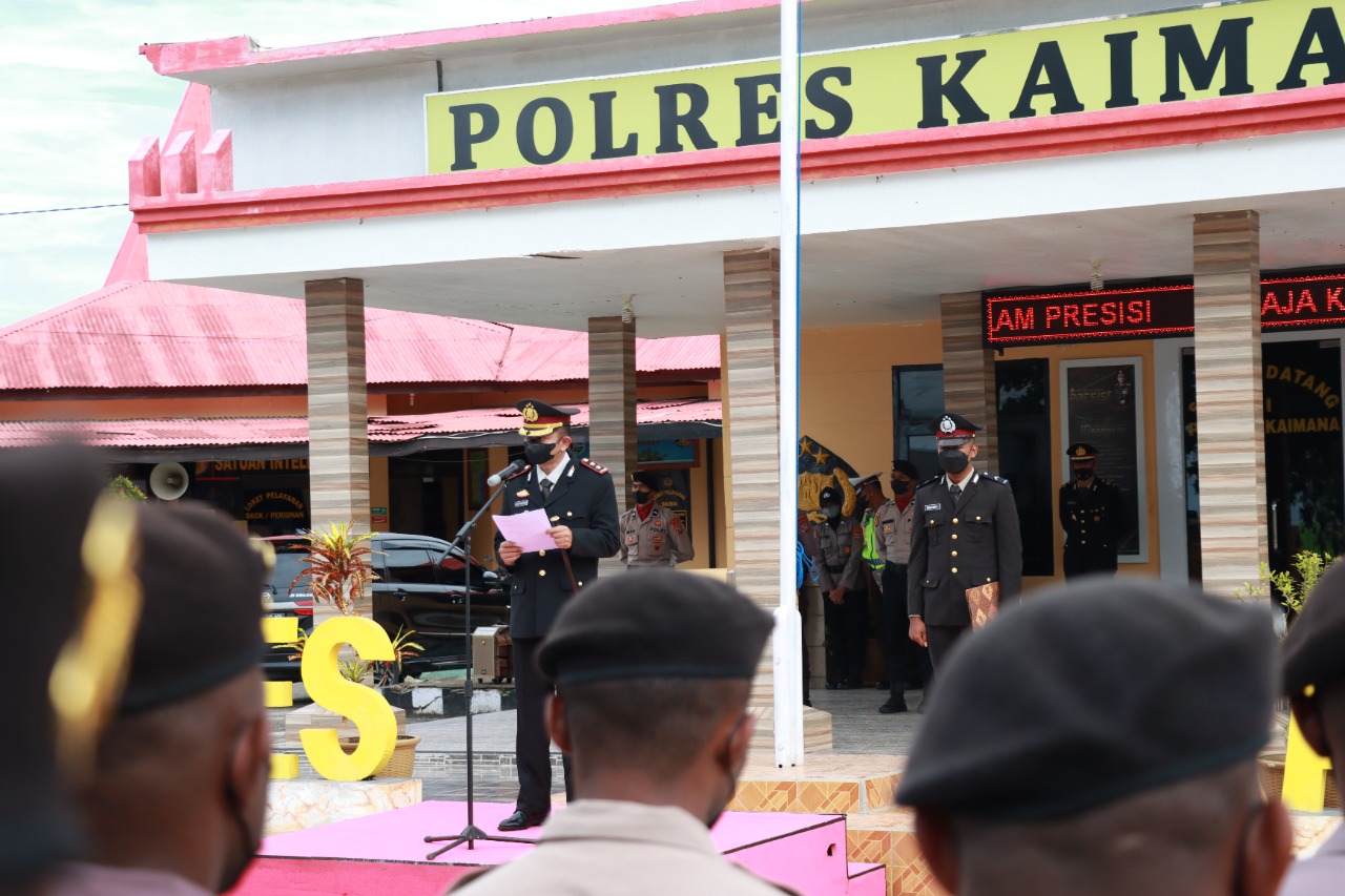 dalam upacara dimaksud bertindak selaku Komandan upacara IPDA Tarsan, Inspektur Upacara AKBP Gadug Kurniawan, S.I.K., M.H., perwira Upacara AKP Ferdinandus Mardi. adapun kerangka pasukan upacara dimana terdiri dari satu pleton pejabat utama serta perwira polres kaimana, dua peleton satuan sabhara, satu regu sat pol air, satu pleton sat lantas, satu pletong gabungan staf, dan satu pleton gabungan reskrim dan intelkam.